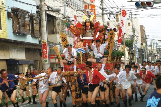 7月15日に行われる、舁き山を引いてタイムを競う「追い山」が見どころです。