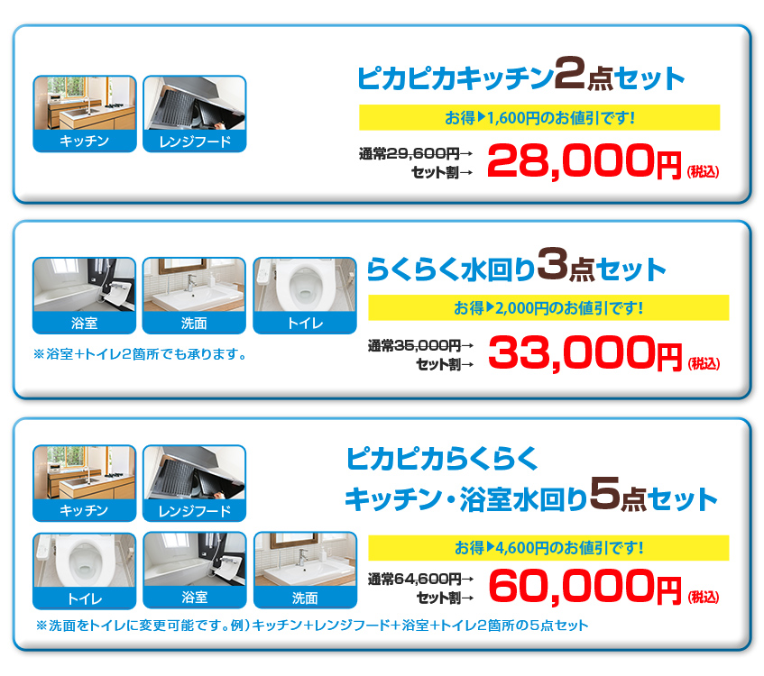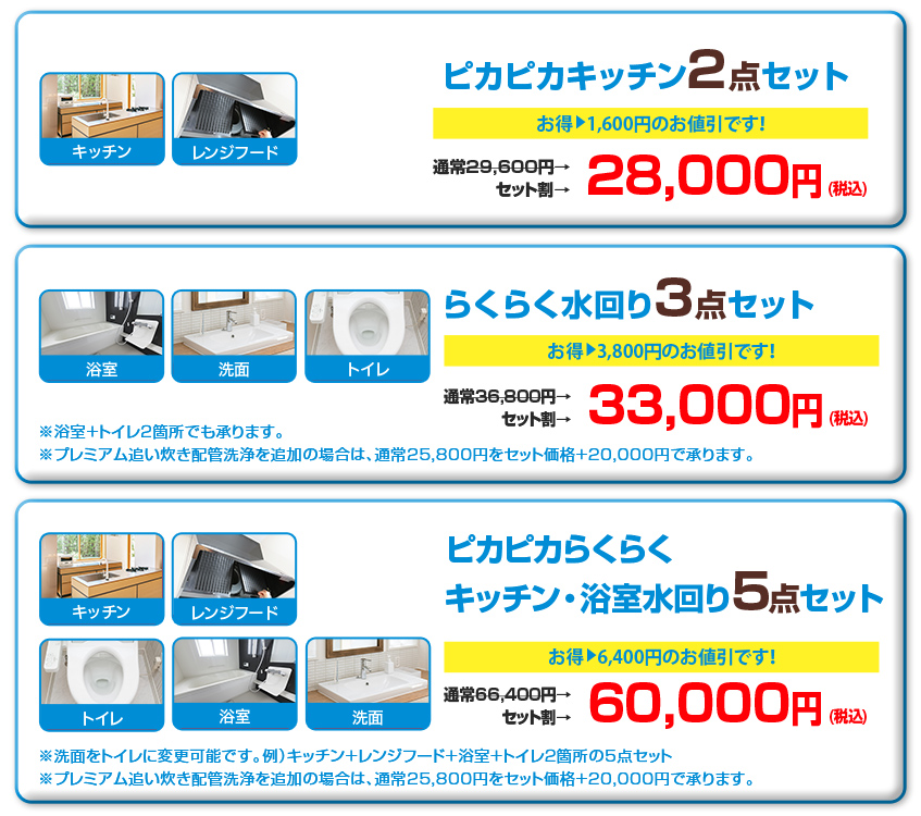しかも、複数箇所をセットでご依頼いただきますと、割引が適用されますので、ぜひこの機会にまとめて掃除しませんか?